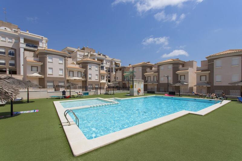 This exclusive complex has a large communal green area and swimming pool.