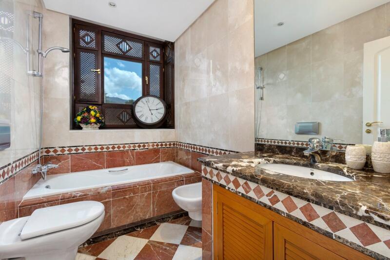 Imponerende sydøstvendt dupleks -penthouse med tre soveværelser i det prestigefyldte gated community Lagos de Sierra Blanca, kun få minutters kørsel fra stranden, Marbella by, Puerto Banús og alle tjenester. Komplekset har 24 timers sikkerhed, smukke tropiske haver, udendørs pool, indendørs opvarmet pool, jacuzzi, motionsrum, sauna og dampbad. Landskabsplejen og atmosfæren i samfundet sikrer den mest behagelige livsstil. Denne luksuriøse og rummelige ejendom består af en entré, rummelig og lys stue med pejs og adgang til den store terrasse, gæstetoilet, moderne og fuldt udstyret med apparater i topkvalitet, køkken med eget vaskerum, to soveværelser med en-suite badeværelser og terrasser. Anden sal har et soveværelse med sit smukke badeværelse en suite og en stor terrasse med fantastisk udsigt og et chill out område. Ejendommen har storslåede marmorgulve og gulvvarme, aircondition (varm-kold) og varmepumpe, alarm, indbyggede skabe, termoruder m.m. to parkeringspladser et opbevaringsrum.