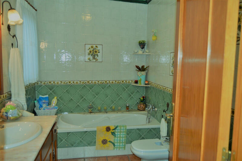 We are proud to present this magnificent family residence comprising of 6 bedrooms, 3 bathrooms positioned over 3 floors. Opening the front door into the impressive traditional hallway which leads you into a spacious groundfloor living area of 225m2. The open plan layout comprising of garage wood storage area, large lounge dining area with an American style galley kitchen featuring a traditional Spanish wood oven. Also on this level there are 2 very large storerooms with good sized bathroom that could be easily converted into 2 more double bedrooms. A fantastic addition is the jacuzzi spa pool with opening roof. The ground floor has the potential to be converted into a commercial opportunity. From the hallway there are stairs leading up to the first floor: