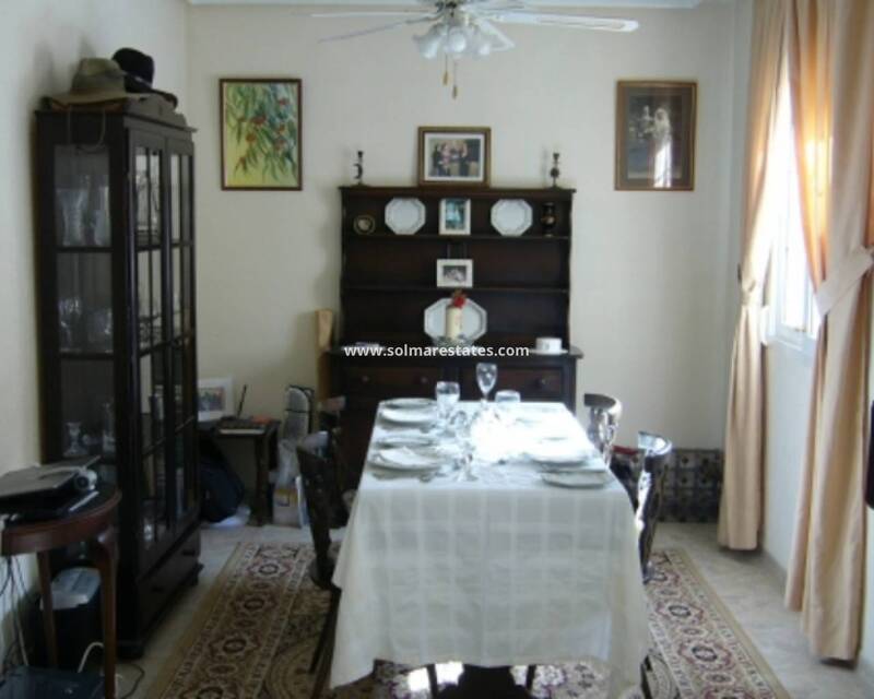 Lounge/diner with ceiling fans, separate fully fitted kitchen, utility room, 3 x double bedrooms with fitted wardrobes, 1 x family bathroom, ground floor W/C, covered front terrace, 1st floor balcony, private solarium, front & side garden with a driveway for off road parking, communal swimming pool & much much more.