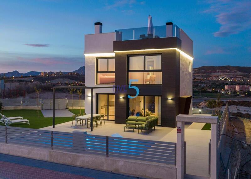 The houses consist of 2 floors and you also have access to the solarium with great views of the sea. On large plots of around 550 m2. Its elevated location offers wonderful open views of the mountains, the city of Alicante and the sea.