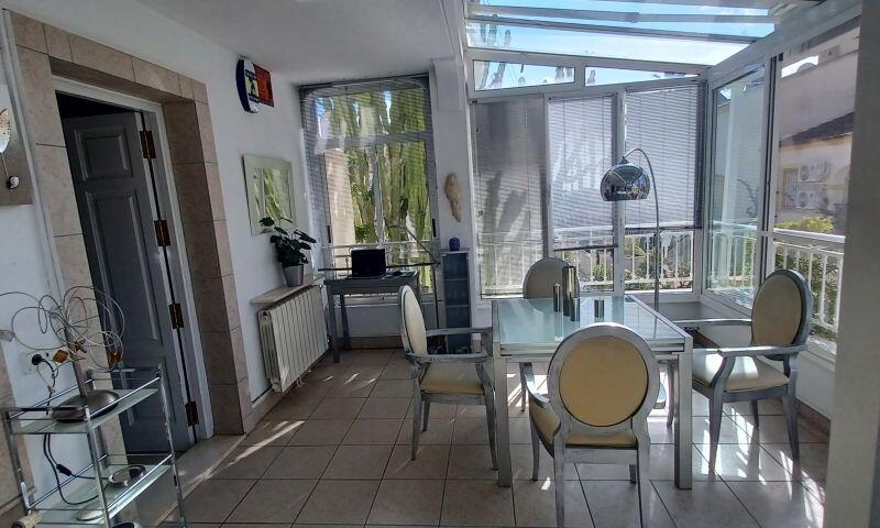 The house enjoys a true Mediterranean essence, located in front of the Pool, SOUTH FACING. It has a front garden with a large glazed porch, a spacious living room with a fireplace and an American kitchen, a pantry, a full bathroom with a shower, and two double bedrooms. Basement/Cellar.