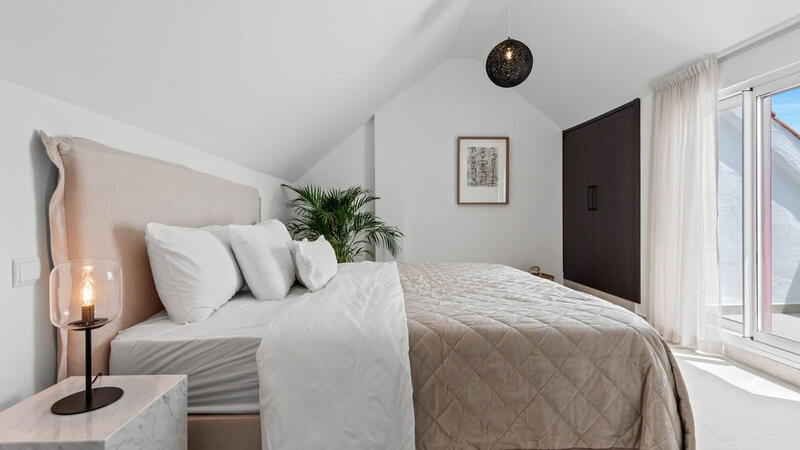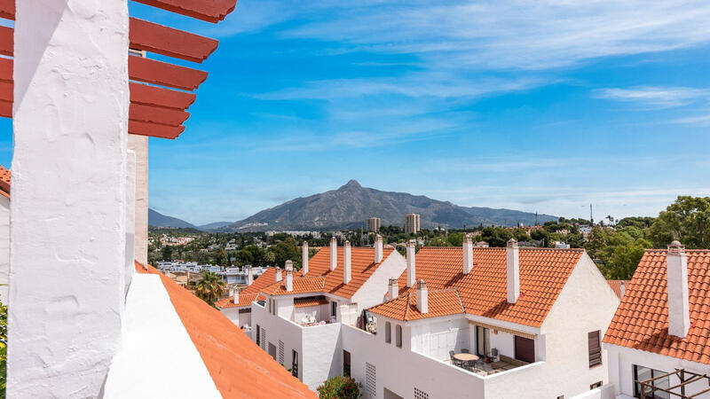 This luxury duplex penthouse is located in La Maestranza, a gated and secure urbanization in the central part of Nueva Andalucia, Marbella. Situated just around the corner from supermarkets, restaurants, and the popular Centro Plaza commercial center, this property offers convenience and easy access to amenities. With a 15-minute walk to the beach and Puerto Banus, it boasts a prime location.Spanning a total of 215m², this refurbished penthouse features three bedrooms, two bathrooms, and a guest toilette. The main floor consists of a bright living room with dining space, an open-plan kitchen, and an east-facing terrace with stunning views of the mountain. The master bedroom, also located on the main floor, offers direct access to one of the large terraces.On the upper floor, you will find two guest bedrooms, both with private balconies that offer breathtaking views of the famous La Concha mountain and the Mediterranean Sea. The property also includes two west-facing terraces that overlook the charming urbanization.Residents of this complex can enjoy the communal amenities, including two large swimming pools set in the well-kept community garden. The property is equipped with air conditioning and comes fully furnished. Other features of this luxury penthouse include fitted wardrobes, a storage room, a security entrance, and individual A/C units.With its excellent condition and recent renovations, this duplex penthouse offers a comfortable and stylish living space. The gated community provides added security, and the elevator in the building adds convenience. Additionally, the property comes with a communal garage for parking. Its proximity to shops, town, port, and schools make it an ideal choice for families. Don't miss the opportunity to own this exceptional property in a sought-after location.