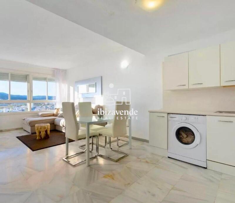 We present a charming 65 m² flat in the prestigious area of Marina Botafoch. Situated on the 4th floor, this flat is in excellent condition and is well furnished, ready to move into.The bright living/dining room offers a cosy and elegant space. The kitchen, fully equipped with washing machine, oven and all the necessary appliances, integrates harmoniously with the living room, creating an open and functional atmosphere. The flat has a large double bedroom and a bathroom with shower. Furthermore, from the balcony you can enjoy the view of the hills.The flat is equipped with air conditioning. In addition, residents have access to a communal swimming pool, perfect for cooling off and socialising. Located in a quiet residential area, the flat is directly opposite the soon to be opened new commercial centre, providing additional convenience with shops and amenities within walking distance.We have many more houses, flats, villas, fincas, commercial premises and land for rent and sale on the island. Thank you for considering us as your real estate agency in Ibiza.We also offer virtual tours on request. Contact us today to request a viewing or more information.