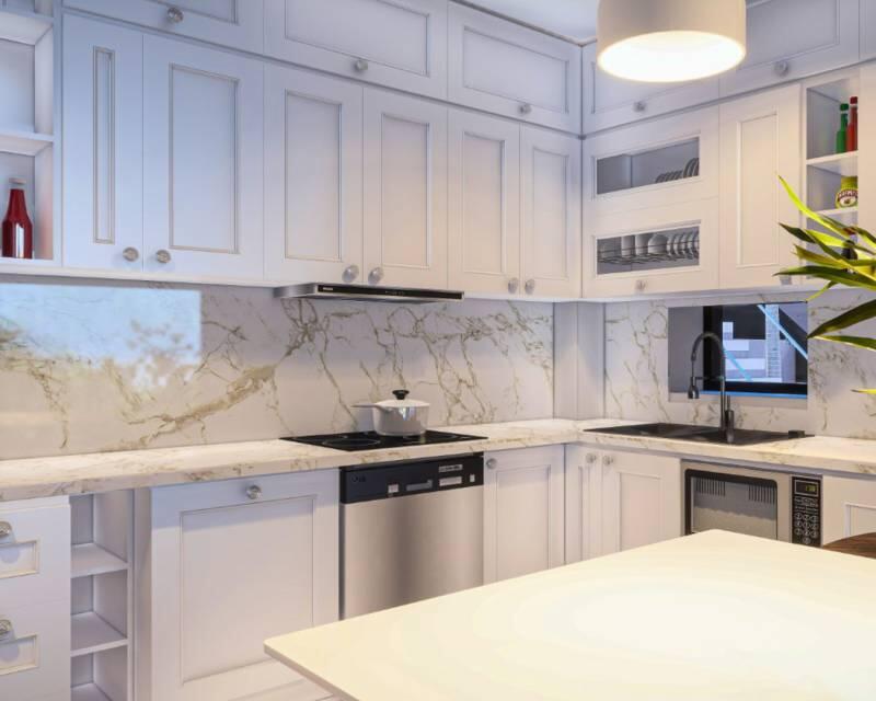 In terms of technical specifications, the villa is equipped with minimum 4/6/4 UV protection glass, ensuring natural light without compromising your well-being. The white solid wood interior, with brushed steel handles, adds a touch of elegance to every corner of the house. In addition, the rotating brake system on the wardrobe doors ensures smooth and silent operation.