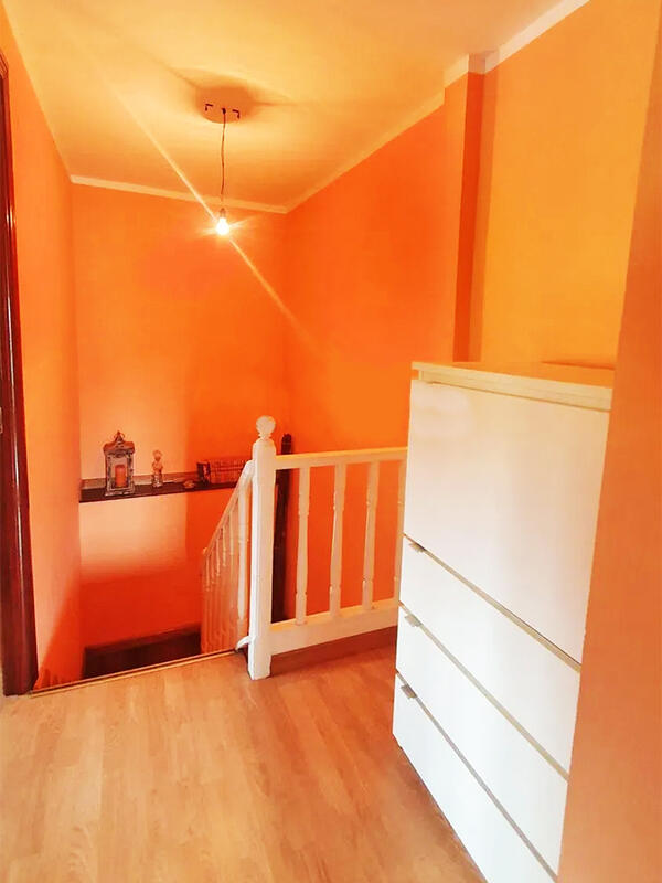 Foran entréen har vi en smuk trætrappe op til første sal, hvor vi finder to soveværelser og et komplet badeværelse med badekar, håndvask, toilet og bidet. På anden og sidste sal har vi yderligere to soveværelser og endnu et komplet badeværelse med bruser, håndvask, toilet og bidet. Soveværelserne har hver en væg med stendetaljer synligt på den vestvendte væg af ejendommen. Endelig er der et meget praktisk opbevaringsrum under trappen i stueetagen. Huset er i flot stand overalt og klar til at flytte ind i uden at skulle foretage sig noget. Dette ville være et ideelt hus til en anden bolig i Asturien, fordi det ikke har en have eller noget land at vedligeholde. Det ligger dog i et åbent rum omgivet af grønne områder og dejlig udsigt til alle sider. Det ligger kun 2 km fra Pravia, som har alle butikker og faciliteter i en lille by, herunder barer, restauranter, skoler, isenkræmmere, garage, benzinstation, supermarkeder osv.