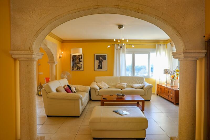 Fabulous 4 bedroom, 4 bathroom villa, with BREATHTAKING panoramic views over beautiful countryside to the mountains. Accommodation, in the main living area, consists of: lounge, with gas fireplace and access to a terrace, with a view of the Montgo mountain; large kitchen, with a dishwasher, gas hob and electric oven;two large bedrooms, both en-suite (one with a shower and one with a bath); twin bedroom; separate shower room. On the upper level: master bedroom en-suite, with large jacuzzi bath and walk-in shower; spacious terrace. On the lower level: storage, and an area ideal for an office. Externally: entry via electric gates to drive, garage and carport; infinity pool; private terraced areas; garage, plus further storage areas. In addition: gas underfloor heating; hot and cold air con throughout; alarm; Sat TV and Wi-Fi. HP97395KA