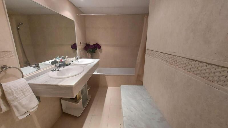 The first floor property has 3 double bedrooms, fully fitted kitchen, 2 bathrooms, large living-dining room, and terraces with views to the valley and golf course.