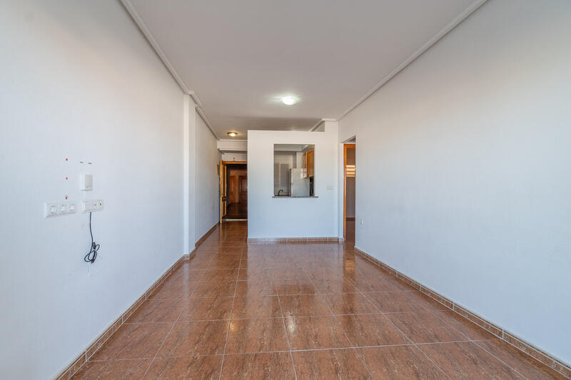 The apartment lies on the 3rd floor and has an entrance hall, 2 bedrooms and 1 bathroom, a separate fitted kitchen and a spacious living room with access to a terrace.