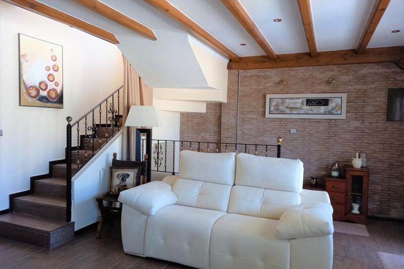 2. Stunning Interiors: The interior of the villa is characterized by its charm and elegance. The large lounge features beamed ceilings, double aspect windows, and a pellet burner, creating a cozy and well-lit space. The lounge also provides access to a beautiful guest bedroom with bespoke fitted wardrobes and an en-suite shower room. Additionally, there's an exterior door from this bedroom leading to a small raised patio, perfect for enjoying morning coffee and leading to the south facing rear terrace with sun awning. The property also includes a further guest bedroom on the ground floor,offering great storage space with fitted wardrobes, currently used as an office/occasional room. There is a family shower room also with walk-in shower. The first floor comprises two more double bedrooms, each with ample storage and one featuring a small south-facing terrace. A stunning large bathroom on this floor boasts a sunken jacuzzi bath, double wash basins, and a toilet. The lower floor surprises with a beautiful dining room with hand built furniture fitted around the modernisation of this fantastic space and an open-plan modern kitchen. The kitchen is equipped with a hidden utility area with subtle lighting throughout with ample storage and work surfaces. There is also a family room/cinema room with low lighting, a shower room, and large storage space.