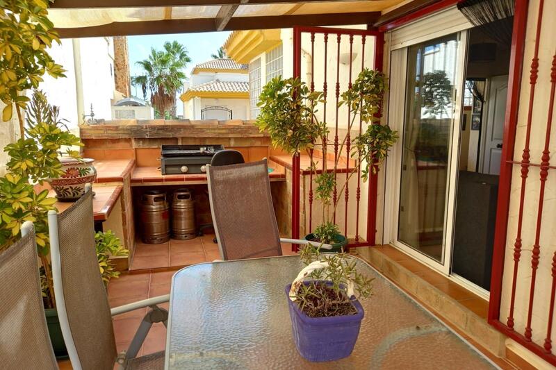 Prime Location: Situated just a leisurely 2-minute stroll from the beautifully maintained communal poolSelf-Contained Guest Apartment: A standout feature of this property is the self-contained guest apartment, complete with a private entrance. Whether you have guests to host or you're considering generating rental income, this space provides endless possibilities and comprises of a spacious lounge/diner with an open-plan kitchen, three bedrooms (two doubles with fitted wardrobes and one single), a convenient shower room, and ample storage options.Amenities at Your Doorstep: Enjoy the convenience of living within a 5-minute walk of local bars, restaurants, a mini-market, pharmacy, and shops. All your daily essentials are within easy reach.Main House Highlights: The main house exudes a sense of spaciousness and comfort. A welcoming east-facing front patio leads to a covered terrace an ideal spot for relaxation. The large lounge/diner is a versatile living space, with patio doors opening onto the side terrace with bbq area. A fully fitted kitchen boasts ample workspace, with ground and overhead cupboards. Two generously sized double bedrooms feature fitted wardrobes, while a family shower room completes this portion of the property. Pre-installed air conditioning adds to your comfort.Expansive Solarium: Ascend the staircase to discover the vast solarium, complete with a BBQ area and an outdoor shower. Enjoy all-day sunshine and year-round views of the surrounding area.Partly Furnished: The property is thoughtfully offered partly furnished, including white goods and ceiling fans, making your move-in process hassle-free.Private Off-Road Parking: Your convenience and security are further enhanced with private off-road parking.