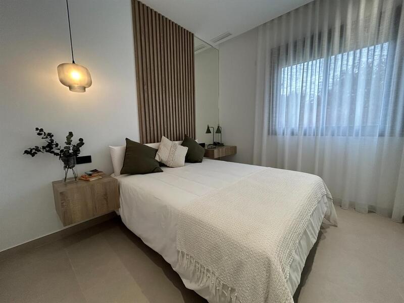 hours of sun all year round. The interior of the property is made up of 3 bedrooms plus a fourth one that can be used as a study, 3 bathrooms, two of them en suite, and a livingdining room connected to an open plan kitchen with integrated fridge and dishwasher, induction hob, raised oven next to a column microwave and extractor hood. The kitchen furniture will be in anthracite colour with stone imitation porcelain worktop. Contact us to know all the details of the building specifications and the house.