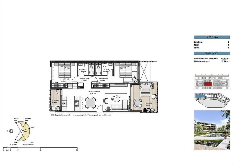 It comprises walking and cycling paths, sport facilities, paddle and tennis courts, a mini-golf course, gardens, dog parks, leisure areas, clubhouse…. Also in the central area is the jewel of the resort, a crystal-clear artificial lake of almost 17.000m2 of water surface, surrounded by white sandy beaches and palm trees, bringing a piece of the Caribbean to the Murcia Region.