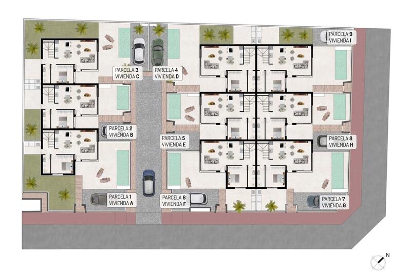 Diese exklusive Neubausiedlung in der charmanten Stadt Benijófar bietet 9 moderne Stadthäuser und Doppelhaushälften mit jeweils 3 Schlafzimmern, 3 Bädern, einem Keller, einem privaten Pool, einem Parkplatz auf dem Grundstück und einer Sonnenterrasse auf dem Dach.