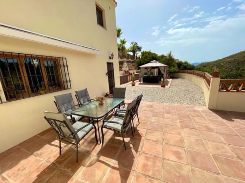 The area around the house is more formal with many planted borders and lots of indigenous plants and cacti. There are various terraces for relaxing, dining and entertaining. The main terrace is large with two stone tables and seating for at least 12 covered by a gazebo. The BBQ area is perfect for large gatherings and there is built in storage as well as three separate grilling areas.