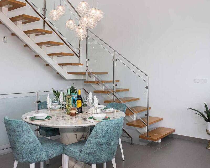 Ground Floor:Spacious open-plan living area and kitchen with modern finishes.Guest WC.Double bedroom with a walk-in wardrobe and en-suite shower room.Direct access to the private terrace and infinity pool.Upper Level:Two double bedrooms, one with a fitted wardrobe and the other with a walk-in wardrobe and private terrace.Both bedrooms feature en-suite shower rooms.