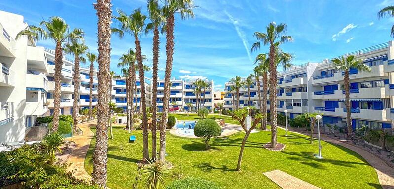 Situated on the first floor with elevator access, the apartment offers 68 m² of living space and is part of a secure, gated complex with beautifully maintained tropical gardens, four communal pools, and private parking included. The property is east-facing, allowing for lovely morning sun.