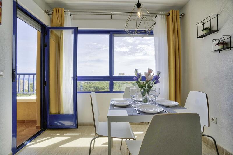 Bonito apartamento, totalmente reformado, estilo moderno, situado en la planta 6, con vistas panorámicas al mar y orientación este en Dehesa de Campoamor. Con superficie de 42m2, consta de 1 dormitorio, baño completo, cocina americana y salón/comedor. Se vende totalmente amueblado, cocina equipada. La vivienda está en perfecto estado. Residencial con amplias zonas verdes y zona de parking. Rodeado de parques y servicios. La playa se encuentra a 800 metros del apartamento. Ideal para las vacaciones.