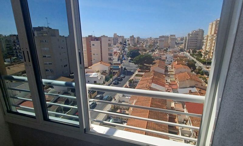 Sunny and Bright Apartment, 7th Floor, located in a quiet residential area, walking to all kinds of Services such as Bus Stop, Shops, Bars, Restaurants,... 1,8 km from Playas de Los Locos, La Mata, Playa del Cura and center of Torrevieja.