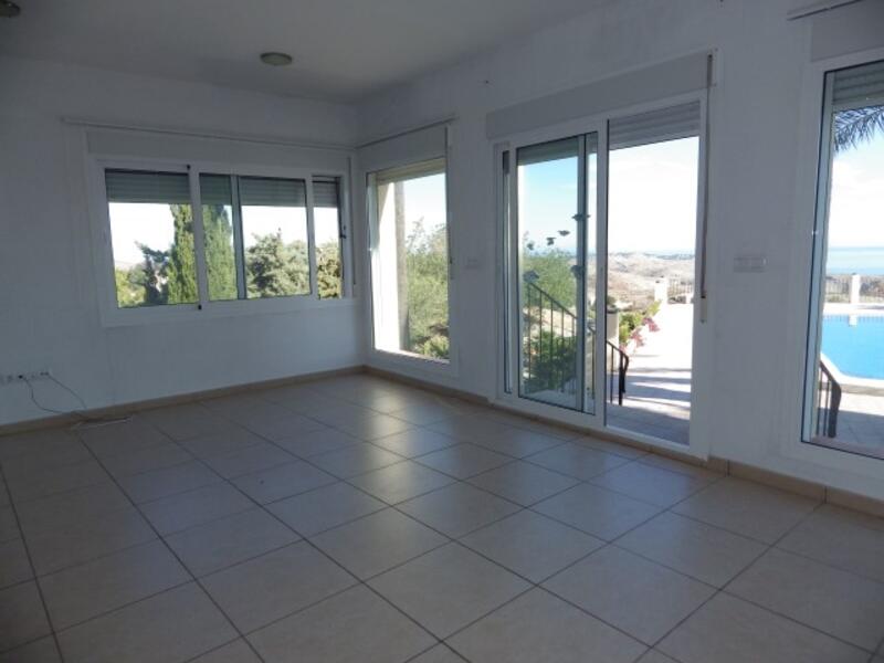 Gran villa a la venta, con vistas panorámicas al mar, ubicada en la zona de Cumbres del sol, en Benitachell. La villa consta de 2 salones, comedor, cocina, cuatro dormitorios de buen tamaño y tres baños (dos con ducha y uno con bañera). Esta propiedad se beneficia de calefacción por suelo radiante a gas, calentador de agua solar, amplio estacionamiento y trastero.