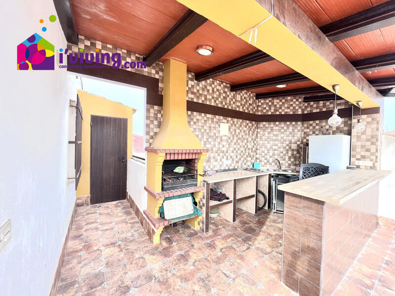 Aprovechando la amplia terraza, se ha creado una zona de ocio con cocina y barbacoa, además de un baño.