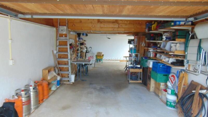 Al llegar al sitio, vemos varios árboles frutales a ambos lados del camino de entrada y llama la atención lo bien que se mantiene el sitio. También vemos una parcela para autocaravanas en el lado derecho. Al final del camino de entrada miramos directamente a la hermosa fachada de esta villa. A la izquierda de la casa encontramos un garaje doble independiente con mucho espacio para aparcar. También en este caso llama la atención el buen mantenimiento del terreno y del garaje.