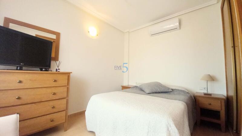 En la planta superior, le espera otro dormitorio doble, también con aire acondicionado y armario empotrado, junto con otro cuarto de baño con ducha recientemente renovado. Este nivel también cuenta con una terraza con impresionantes vistas a la montaña y un práctico armario de almacenamiento, excelente para tomar el sol.