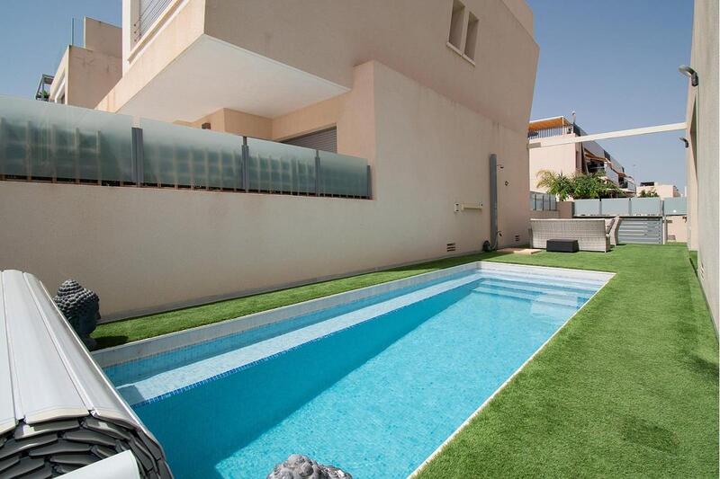 With 3 bedrooms and 3 bathrooms, the villa has plenty of outdoor space, not only on the ground floor, where there is a private swimming pool, but also on the 1st floor (terrace) and on the 2nd floor (private solarium with sea views).