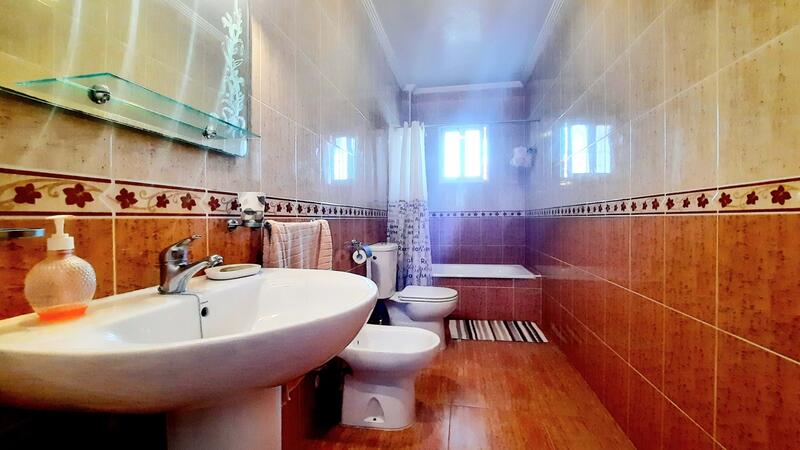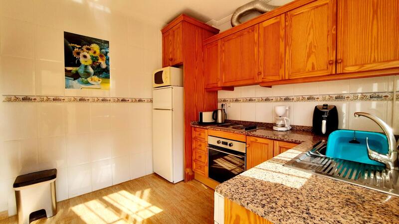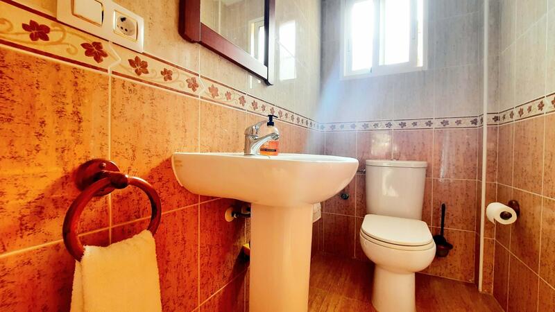 On the first floor are two bedrooms with fitted wardrobes. The front twin room has access to a terrace. Also on this first floor is a large family bathroom. From the first floor there are stairs leading to your own private solarium. Another great outdoor living space. The large communal pool area is only a few metres from the house and here there are showers and places to sit and relax. There are some local bars/restaurants on your doorstep and the town square of San Pedro del Pinatar is a 10-15 min walk.