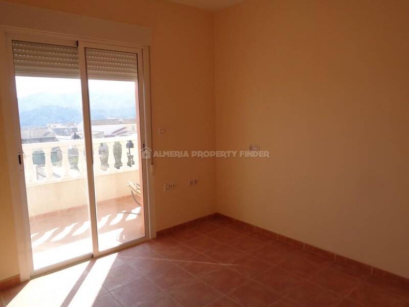 Un petit porche couvert mène à la porte d'entrée qui s'ouvre dans un couloir en forme de L. À la gauche se trouve une chambre double avec placards et une salle de bains salle de bain comprenant baignoire avec douche au-dessus, lavabo, bidet et WC. Partie vitrée double portes conducteur dans un bon grand salon avec coin cuisine de style américain (non montée) et buanderie. Portes patio s'ouvre sur une terrasse avec vue sur la vallée. Il y a deux autres chambres doubles, une avec placards et porte-fenêtre sur la terrasse et une salle de douche séparée.