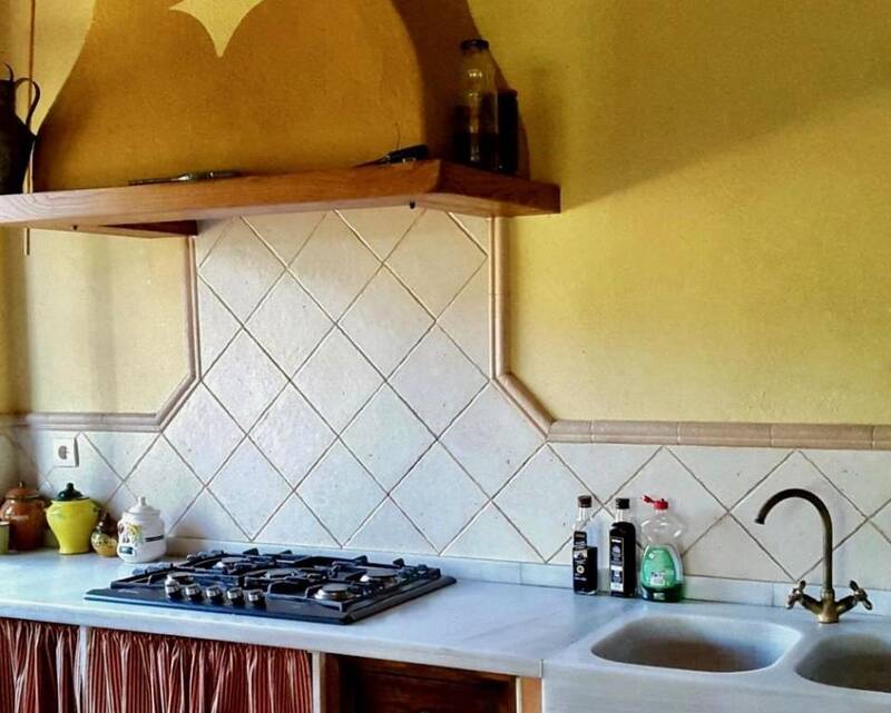 The main house is laid out over 118m2, has four bedrooms, two bathrooms, a living room with fireplace, and a kitchen.