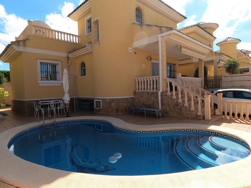 This very nice villa is located inside of a secured gated community and is accessed through a private secured gate . The front of the property offers an off road parking space for 1 car, a fully tiled garden and a beautiful kidney shaped pool. To the back of the pool there are ample seating areas and a BBQ, The perfect space for relaxing, alfresco dining or entertaining family and friends.