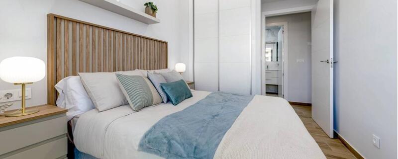In this residential complex you can find 2-bedroom homes with 2 bathrooms, all of them with very large terraces c 60m2. The property comes with electric blinds, built in wardrobes, aerothermal water heating system and pre-installation of Air conditioning - (buying through PPF-SPain.com and we will pay for the full installation of the air conditioning. The ground floors have a garden and 4th and 5th floors have solariums from which to enjoy the sun and our magnificent climate. All properties come with a storage unit and underground car park. A common area with a large swimming pool and an indoor gym complete a residential complex in a truly privileged area.