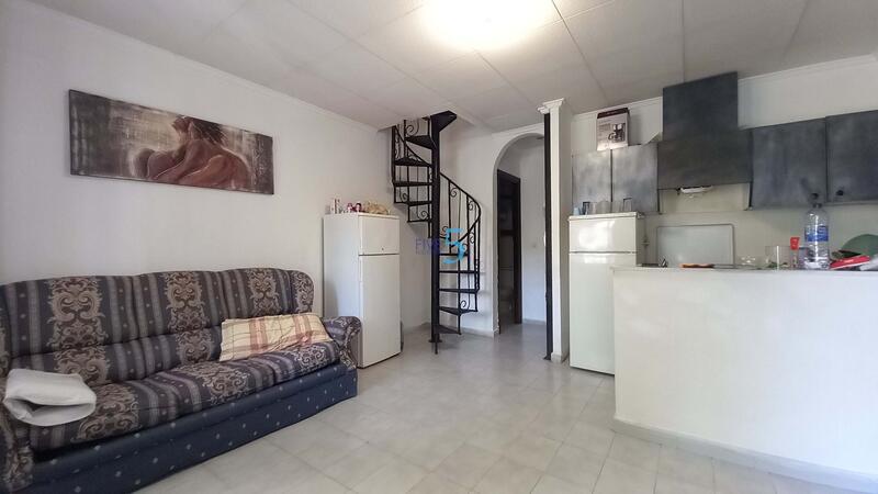 The ground floor includes a double bedroom equipped with a ceiling fan and direct access to a utility room, as well as a bathroom. A spiral staircase leads to the second bedroom, which also has access to an additional room. This extra space can be transformed into a dressing room or a small bedroom, though it's important to note that this room is not officially listed on the property's deeds.