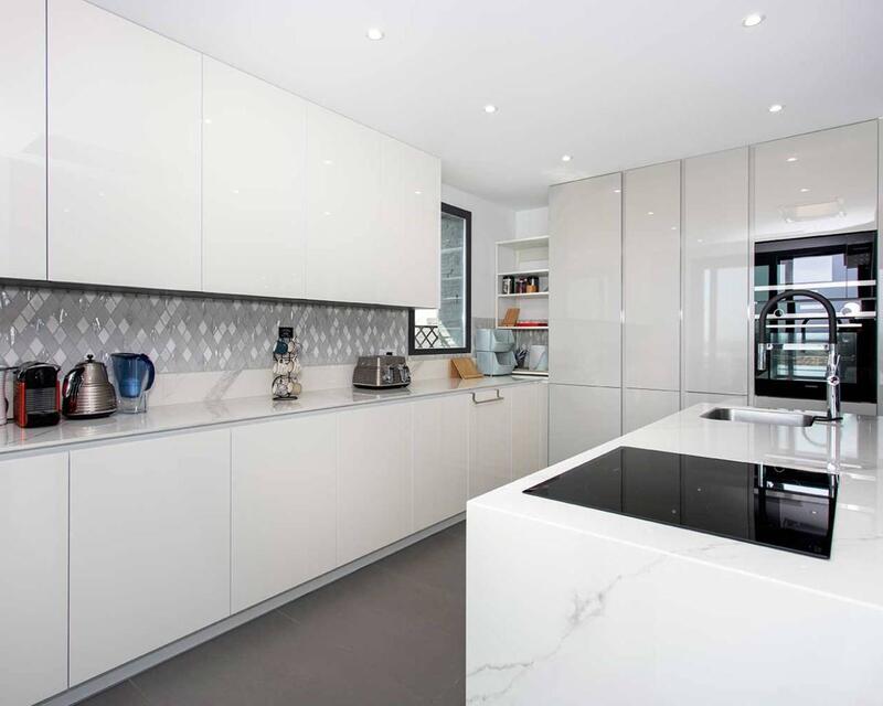 Located on the upper floor there are 2 bedrooms, the main bedroom which has a large American size dream bed, large LED TV, walk-in wardrobes, an en-suite bathroom with walk-in shower and a private balcony which boasts some magnificent views of the coast. The second bedroom has a super king size bed with it's own tv, en-suite bathroom and glossy white flush wardrobes.