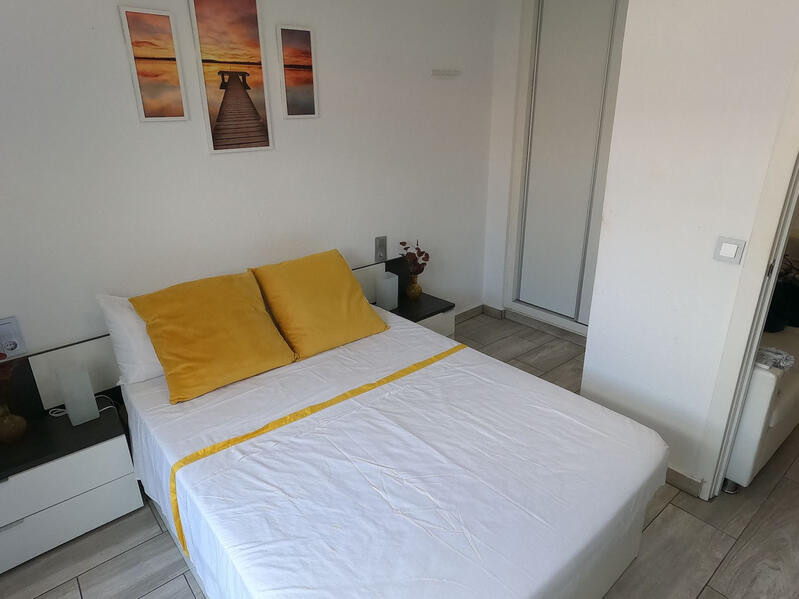 The interior is fully furnished, allowing you to move in with ease. The living area has a sofa bed creating space for two extra guests. Each bedroom is a tranquil retreat, with patio door access to the large outsise space. The functional layout maximizes every square meter, making it feel welcoming.