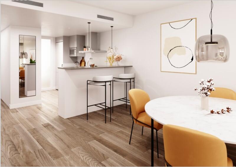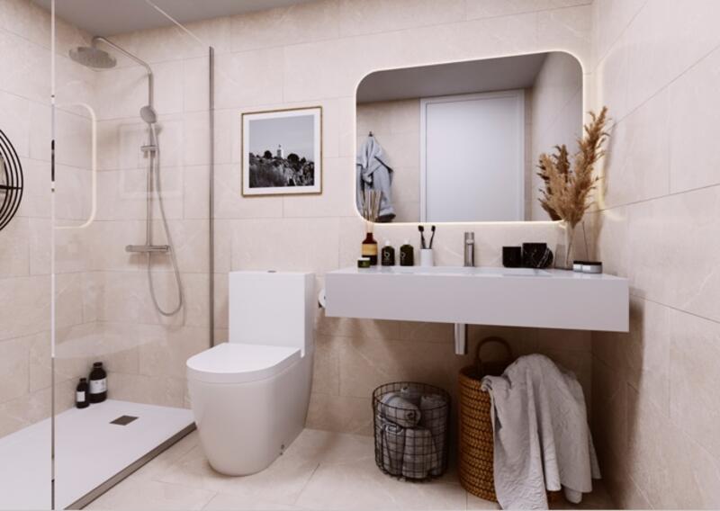 The first floor apartament of 83m2 is distributed in 2 bedrooms 2 bathrooms, open plan kitchen living room and a terrace of 12m2, the sales price includes parking and storage room.