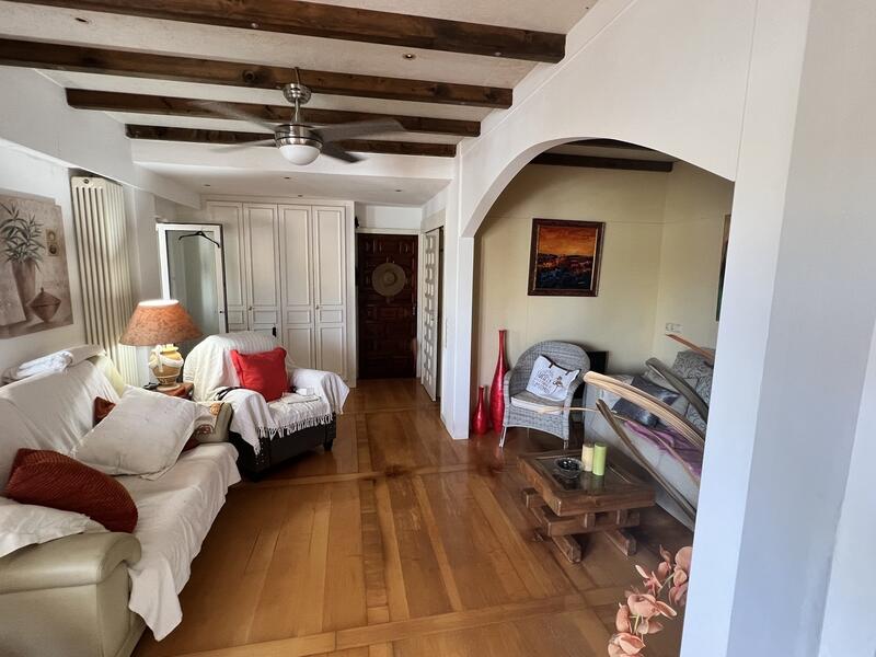 This apartment is all about location, 2 mins to the beach, sea views and quiet location. Penthouse position this property would make a great summer home or rental opportunity. It is spacious and has a very large terrace for all the entertaining or just relaxing in the 'all day' sun. The property has two reception rooms and a large galley style kitchen that leads to the dining area. There is a shower room and a good sized bedroom. The lounge has a large alcove area that has a double sofa bed in it. The complex is well kept and quietly nestled in a palm lined avenue with many spectacular villas surrounding it. The is gated parking available and there is a lift to all floors.
