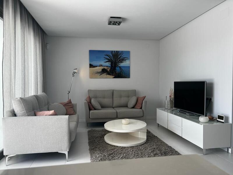 The house consists of a spacious kitchen, including all appliances, an adjoining storage room with washing machine and water heater. There are 2 bedrooms and 2 bathrooms. The master bedroom has an en-suite bathroom. Both bedrooms have access to the north terrace (10m2).