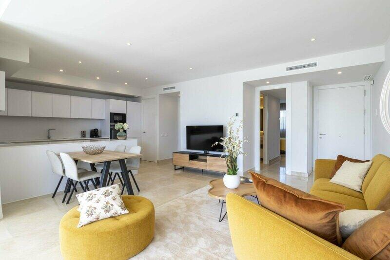 In THE best location on the Costa Del Sol, Cabopino, is this luxury contemporary 2 bedroom, 2 bathroom garden apartment with sea and golf views just 5 minutes from the beautiful beaches of Marbella and all facilities.