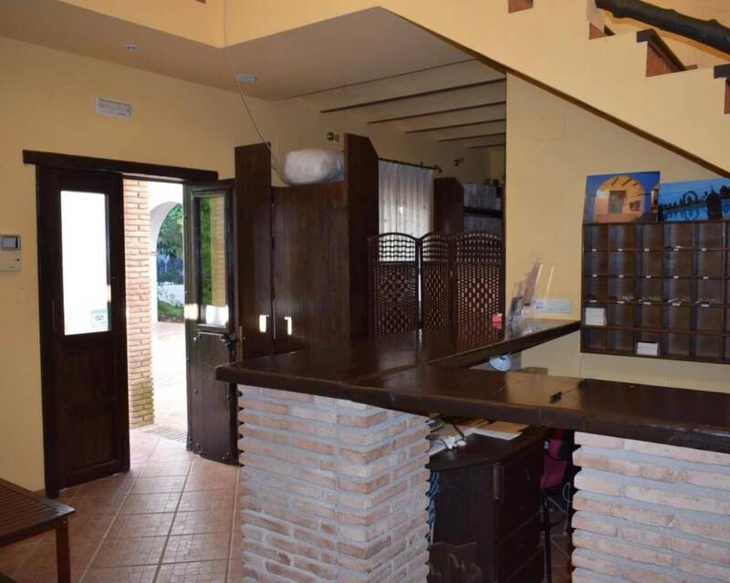 A charming rural hotel full of character in the province of Granada, Andalusia, Southern Spain. Nearby is the typical Spanish town of Montefrio, one of the top 10 towns with the best views of the world, as mentioned by the National Geographic magazine. The famous Alhambra and the center of the city of Granada can be reached within half an hour. Malaga airport is 1.2 hours away, and Granada airport is 40 minutes away. This charming rural hotel is a completely renovated old Andalusian farm, decorated in traditional rustic style. It has a very nice central courtyard with gardens, perfect for sitting and relaxing al fresco. There are 20 rooms (13 double bedrooms and 7 apartments). A reception, a very spacious lounge / sitting room with fireplace and bar, a professional kitchen with a fridge / freezer room and several storages. Furthermore, there is a Sauna and Jacuzzi area, a patio-terrace with fountain, pergolas, and a huge swimming pool with stunning panoramic views overlooking the Granada valley and the Sierra Nevada mountains. Some extras the old farm / hotel has to offer is a conference room, a library, a chapel, and a paved courtyard with bar for celebrations. Next to the hotel is a big family house of 400m2, consisting of seven bedrooms and three bathrooms. It has its own courtyard and a large swimming pool with stunning views. Part of this very spacious house could easily be added to the accommodation / business. The plot is surrounded by olive and almond groves, which are also for sale (not included in the price). For a future owner perhaps worth a consideration. Definitely a fantastic chance to run a full of character charming rural hotel in the heart of Andalucía.