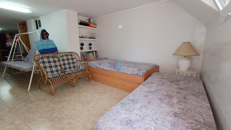 Situated just 50 meters from the sandy beaches of Oliva Nova, this spacious 3-bedroom semi-detached home boasts a remarkable converted under build, offering additional living space including an outdoor kitchen, a full bathroom, and extra bedroom space.