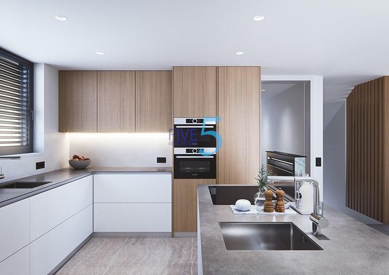 Gardens with water drainage system in the paving, fully finished and customisable including vegetation, irrigation and lighting. Terraces at various heights creating cosy atmospheres surrounded by vegetation and infinite sea views.