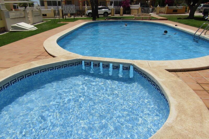 Looking for a holiday home, investment or for permanent living, this Townhouse will fit all of the options. Providing spacious lounge area, glazed terrace area to the front and a covered area at the back currently used for dining. There is an open fully equipped kitchen, bathroom on the ground floor also, upstairs there are two double size bedrooms with a good size balcony off the master bedroom and a full size family bathroom. At the front of the property there is a terrace as well as off parking in the driveway. The property is being sold fully furnished with air conditioning and ceiling fans. Located in a gated community with pool and gardens.