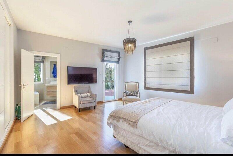 Huge living and dining area with an open plan fully fitted kitchen with Bosch appliances. Direct access to the outdoor spaces, gardens and private pool.