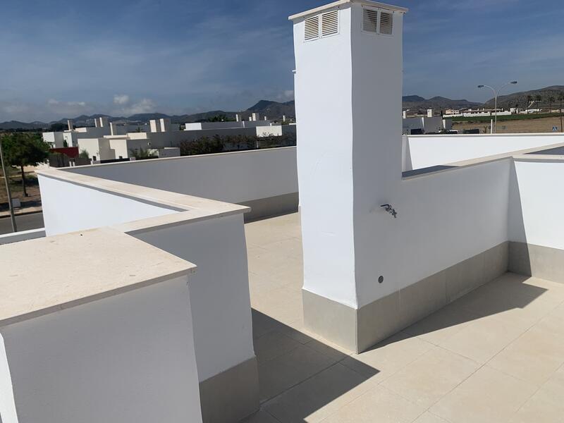Outside there is a driveway the gate of which is electrified and can be opened remotely and can fit 2 cars very easily. Off this area is a lockable storage unit. The front terrace is very large, south facing and has a private pool. The area to the rear of the property is a designated dining area and here is where we find the stairs up to the 2 solarium areas which covers approx. 65m2 and is already set up with water and electricity so a summer kitchen could be fitted easily. This solarium is an ideal area where you could sit and watch the beautiful views to the sea as well as the stunning sunsets.