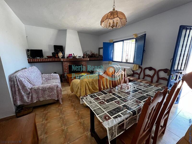 Herregård til salgs i Pago Manzano Alto, ca 7 minutter fra Torrox Pueblo. 70M2 alt på en etasje, består av stue med og åpen kjøkkenløsning, 3 soverom, familiebad, terrasse med grill. Tomt på ca 5000m2 oliventrær. Den har strøm og selges med 1 andel Patamalara vann. Huset er i god stand, du kan bo i det. I et svært ettertraktet, rolig område, med vestorientering og flott utsikt over fjellene og havet