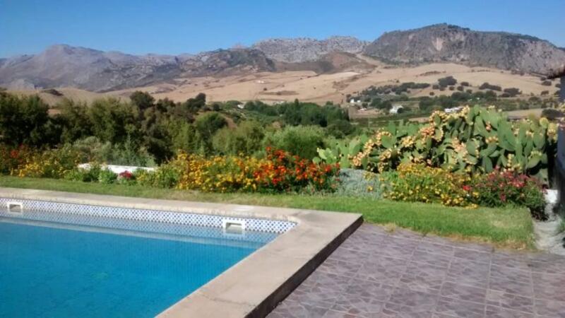 A private area off the main house, which is partially walled and has incredible views towards the Grazelema and Sierra de la Nieves National Parks . Terracing, lawn and mature flower beds. The pool is 12m x 5m and has walk in steps . 1m shallow end and 3m deep end . Automated filtering system . new pump was installed 2 years ago.