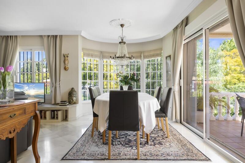 nær stranden, i nærheten av golf, velrenommert område, i nærheten av alle fasiliteter, fasilitetsrom, gjesteleilighet, utstyrt kjøkken, klimaanlegg, vakker hage, hage, terrasse, terrasse med overbygg, tennisbane, garasje, privat svømmebasseng, alarmsystem, innebygget garderobeskap, kort avstand til skoler, hage- og bassengutsikt, badstu, utsikt over fjell, boligområde, sjøutsikt, kort avstand til restauranter