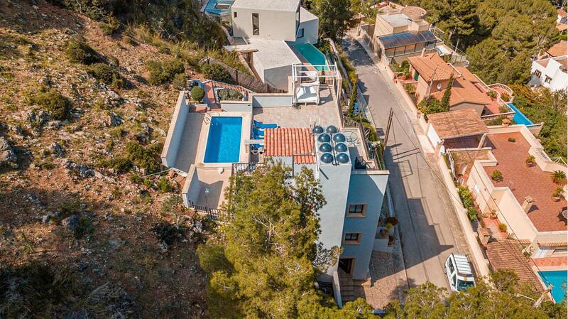 The Property is located just 5 minutes by car to the beach and the center of Canyamel where there is a wide variety of restaurants, shops and venues. Just 10 minutes by car you will find the famous Canyamel golf course for lovers of this sport. The villa is located on a steep plot which offers spectacular views of the sea and the mountains. The 3-storey property is distributed on the ground floor entrance hall, by a staircase or with the elevator you can access all the floors, the first floor is distributed in 2 double bedrooms with fitted wardrobes, one of them with direct access to a terrace with views cleared to the sea and mountains and 1 bathroom with shower. The second floor is distributed in living room, dining room, laundry room, large fully equipped and furnished open kitchen with 2 direct exits, one to the terrace and the other to a small patio where the engine room is located. From the patio you can access the roof terrace where there is a swimming pool, a chill out area with a built-in barbecue and unobstructed views of the sea and mountains that words cannot exceed. The property has a vacation license with reservations for this year and with the possibility of continuing directly with the exploitation. The villa is equipped with double glazing, water softener, heated swimming pool, air conditioning with heat pump and elevator. The price does not include the furniture (optional), the corresponding purchase taxes, or the notary and property registration fees.